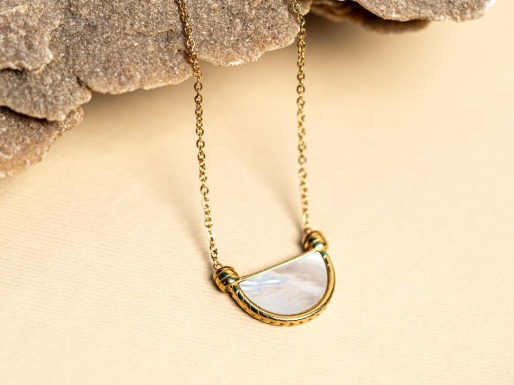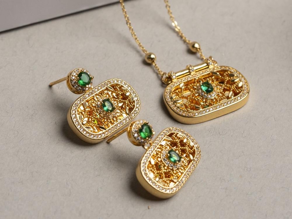 .A stylish set featuring 18K gold-plated set earrings and a captivating flower pendant necklace