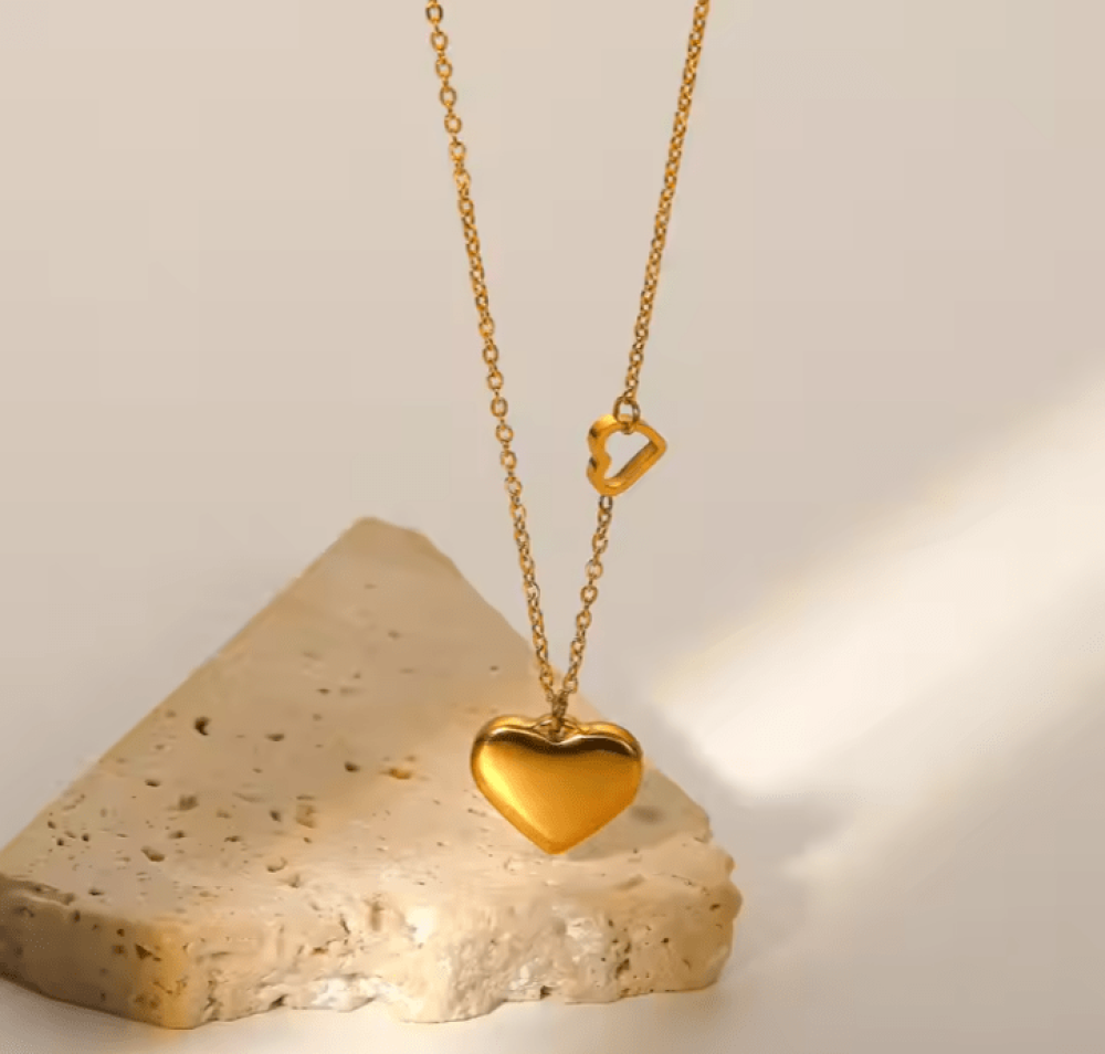 قلادة قلب من ذهب، مطلية بالذهب عيار 18 قيراط، تتميز بدلاية قلب مشع تجسد الدفء والحب. تصميمها الأنيق يضفي لمسة خالدة من الرقي على أي إطلالة، مما يجعلها قطعة ساحرة لكل المناسبات.